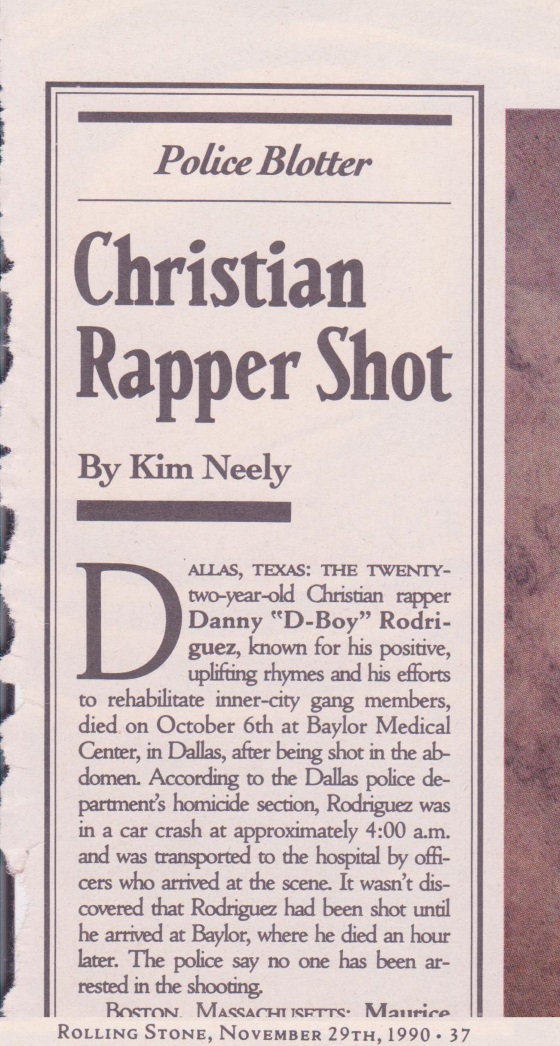 D-Boy remembered in the November 1990 issue of CCM Magazine.
