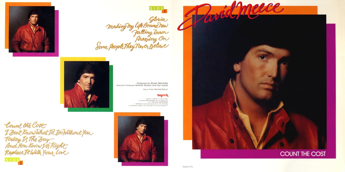 By 1983, I had been influenced by European techno pop and wanted to head in that direction. At the same time, I was desiring to reintroduce my classical roots musically. Putting the techno pop and classical together, starting with Counting the Cost, began a challenge that I am still in the process of dealing with musically. – David Meece [Excerpt from the liner note of the compilation album Chronology released on Myrrh Records in 1986]