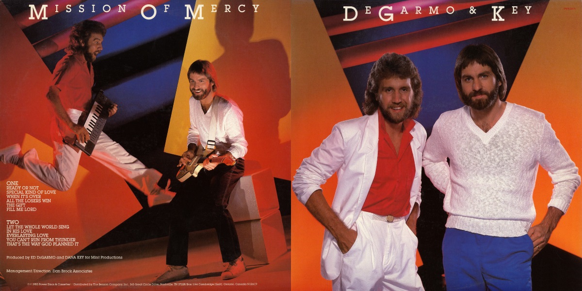 Mission of Mercy was included among the Best Albums of 1983 by CCM Magazine, voted number ten (tied with Bruce Cockburn’s The Trouble with Normal) on a list featuring eleven albums released from the last quarter of 1982 through the last quarter of 1983. – In October, Devlin Donaldson said of D&K’s new sound: ” ‘Mission of Mercy’ makes a public testament certifying that DeGarmo & Key have found a new vision and are beginning to explore it. They no longer rely on guitar heroics or a Hammond organ screaming through a Leslie to blast their fans into submission. Neither are they putting faith into calculated pop songs to carry them into a broader market. Instead, they are writing songs with substance that just happen to be commercial and arranging them with the synthesizers defining the focus.”