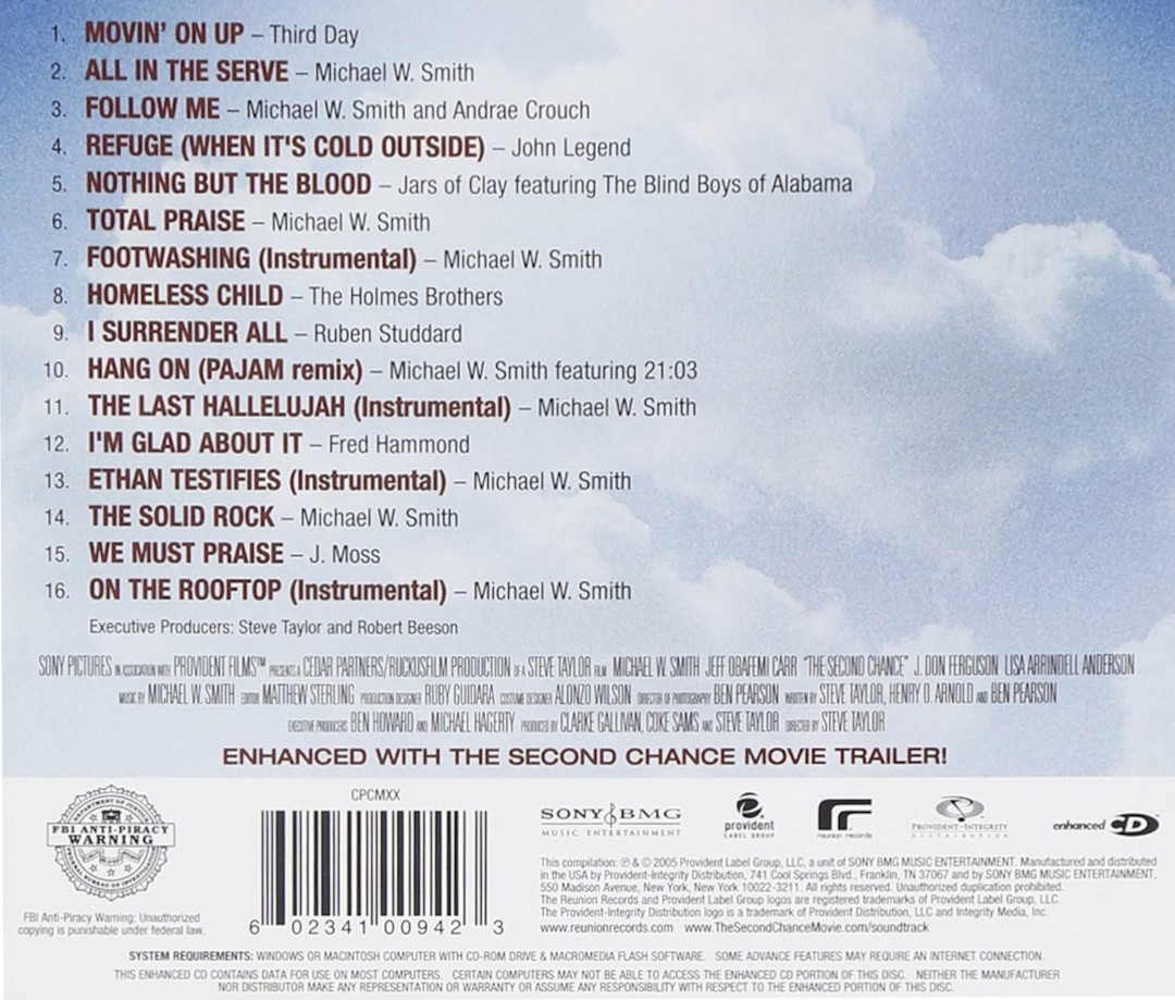 The Second Chance: Original Motion Picture Soundtrack features music basically composed by the American singer, songwriter, and producer Michael W. Smith for the feature film The Second Chance (which he actually also starred in), directed by the American singer/songwriter and producer Steve Taylor. The soundtrack album was released on Reunion Records in December 2015, manufactured and distributed in the US by Provident-Integrity Distribution and Sony BMG Music Entertainment. The film was released in the United States on February 17, 2006 to a limited number of theaters; the widest release was 87 theaters. The Second Chance won Best Feature Film at the 6th Annual Christian WYSIWYG Film Festival.