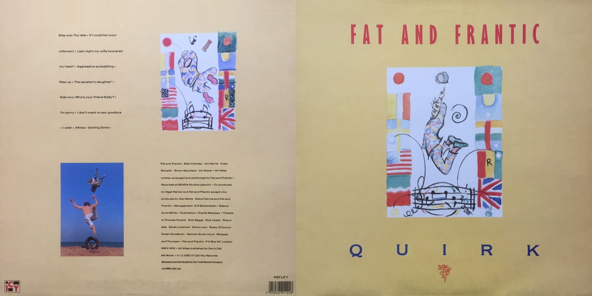 Quirk is the third full-length studio album by the British alternative pop band Fat and Frantic, released on ICY Records (I’ll Call You Records) in 1990, marketed and distributed by the Total Record Company via BMG (UK) Ltd. The album was recorded at Wildlife Studios in Ipswich, England; with Nigel Palmer and the band co-producing (except tracks 3, 6, and 13 produced by Ken Watts, Steve Fairnie, and the band). All songs written, arranged, and performed by Fat and Frantic.
