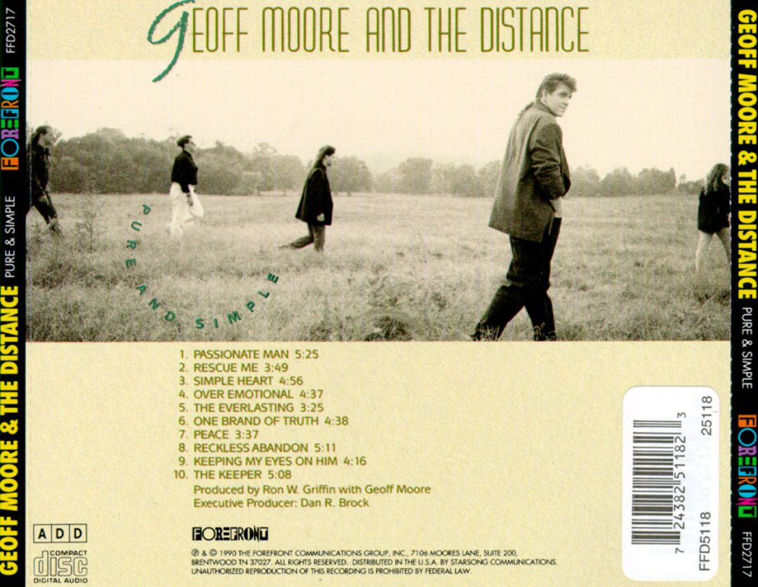 Pure and Simple is the third album by the American rock band Geoff Moore & The Distance, released on ForeFront Records in 1990, distributed in the US by The Benson Company. The album was recorded by Dave Hall, JB Baird, and Ron W. Griffin at Quad Studios and OmniSound Studios in Nashville, Tennessee; and was produced by Griffin with Geoff Moore. Mixed by JB and Griffin at Digital Recorders in Nashville.