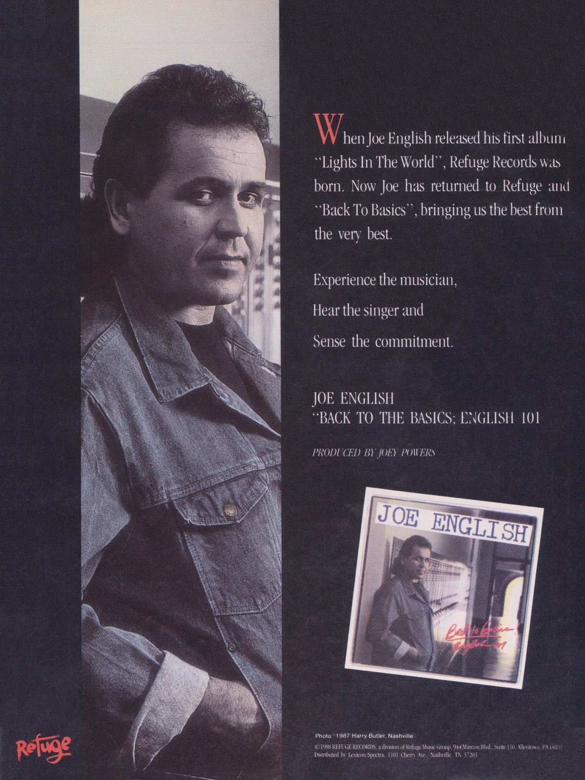 A full-page advertisement for Joe English’s Back to Basic! English 101 was featured in the April 1988 issue of CCM Magazine.