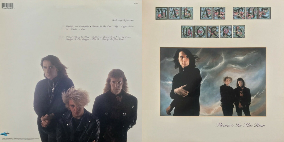 Note: Simultaneously released on cassette, 12-inch vinyl LP, and CD by Frontline Records. Flowers in the Rain and Boomerang were later re-issued on one CD as a part of KMG’s Classic Archives Music Value Pak series. Remastered by Rob Colwell and re-issued by Retroactive Records in 2019 entitled Flowers in the Rain (Legends Remastered), featuring 12 page insert and one exclusive bonus track (“Flowers”).