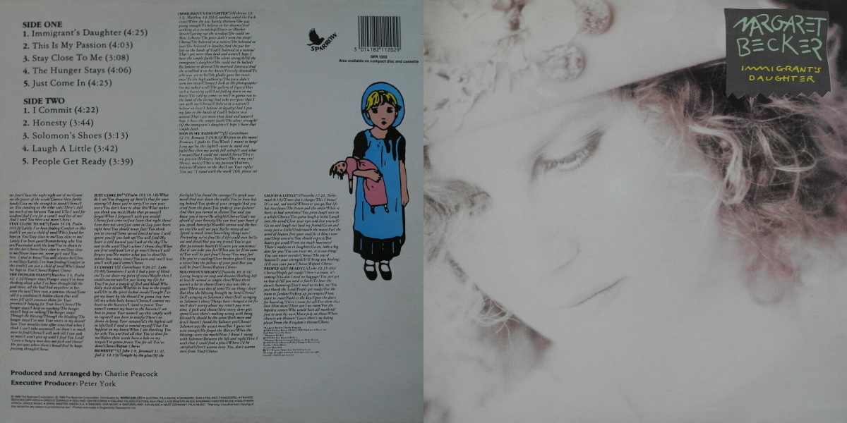 Immigrant’s Daughter is the third studio album by the American singer and songwriter Margaret Becker, released on Sparrow Records in August 1989, distributed by Word. The album was recorded by Rick Sanchez at Studio 55 in Los Angeles, Moon Studios in Sacramento, and Studio D in Sausalito, California; with Charlie Peacock producing and arranging. Mixed by Jeff Balding. All songs written or co-written by Margaret Becker except the Curtis Mayfield classic “People Get Ready”.
