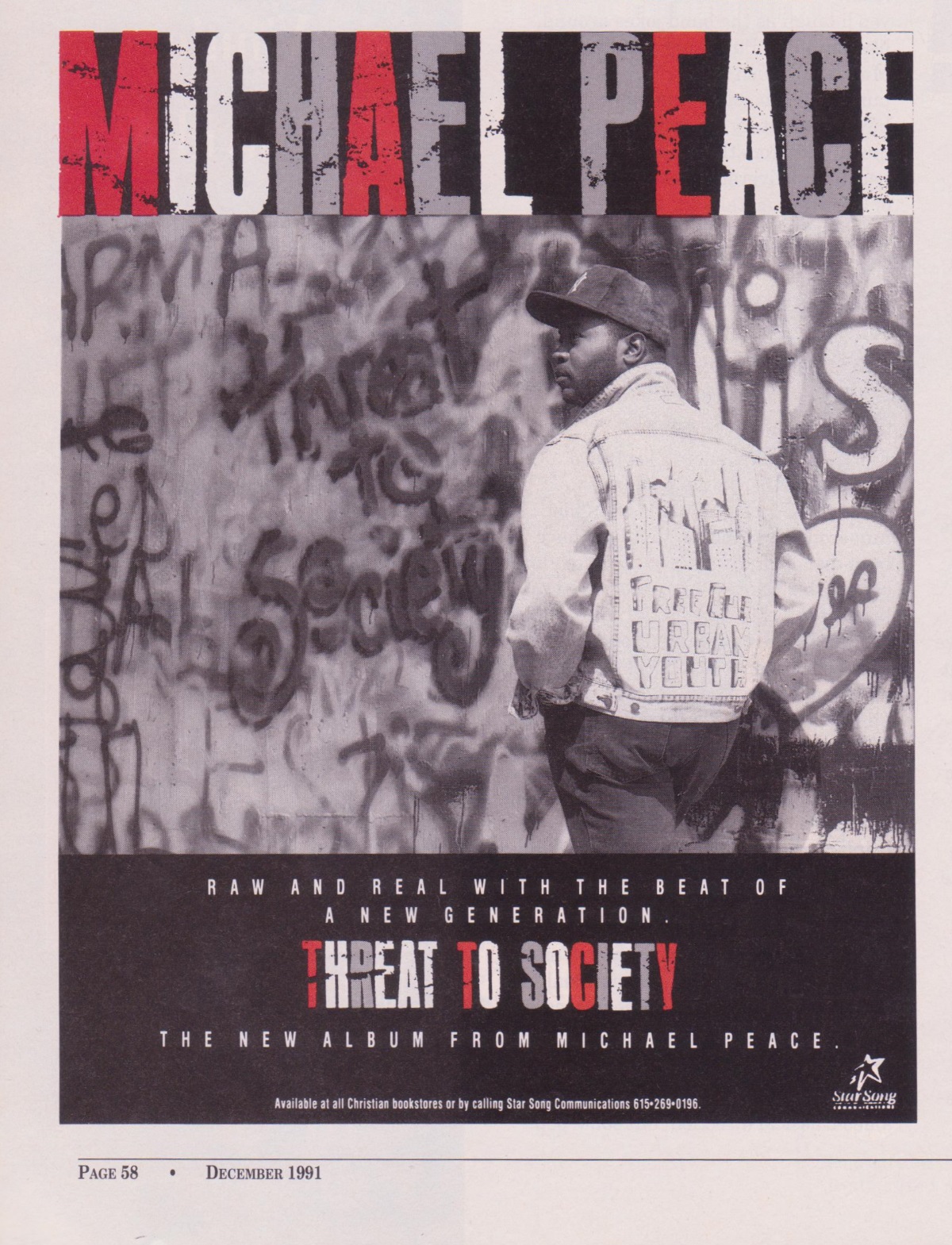 An advertisement for Michael Peace’s Threat to Society was featured in the December 1991 issue of CCM Magazine.