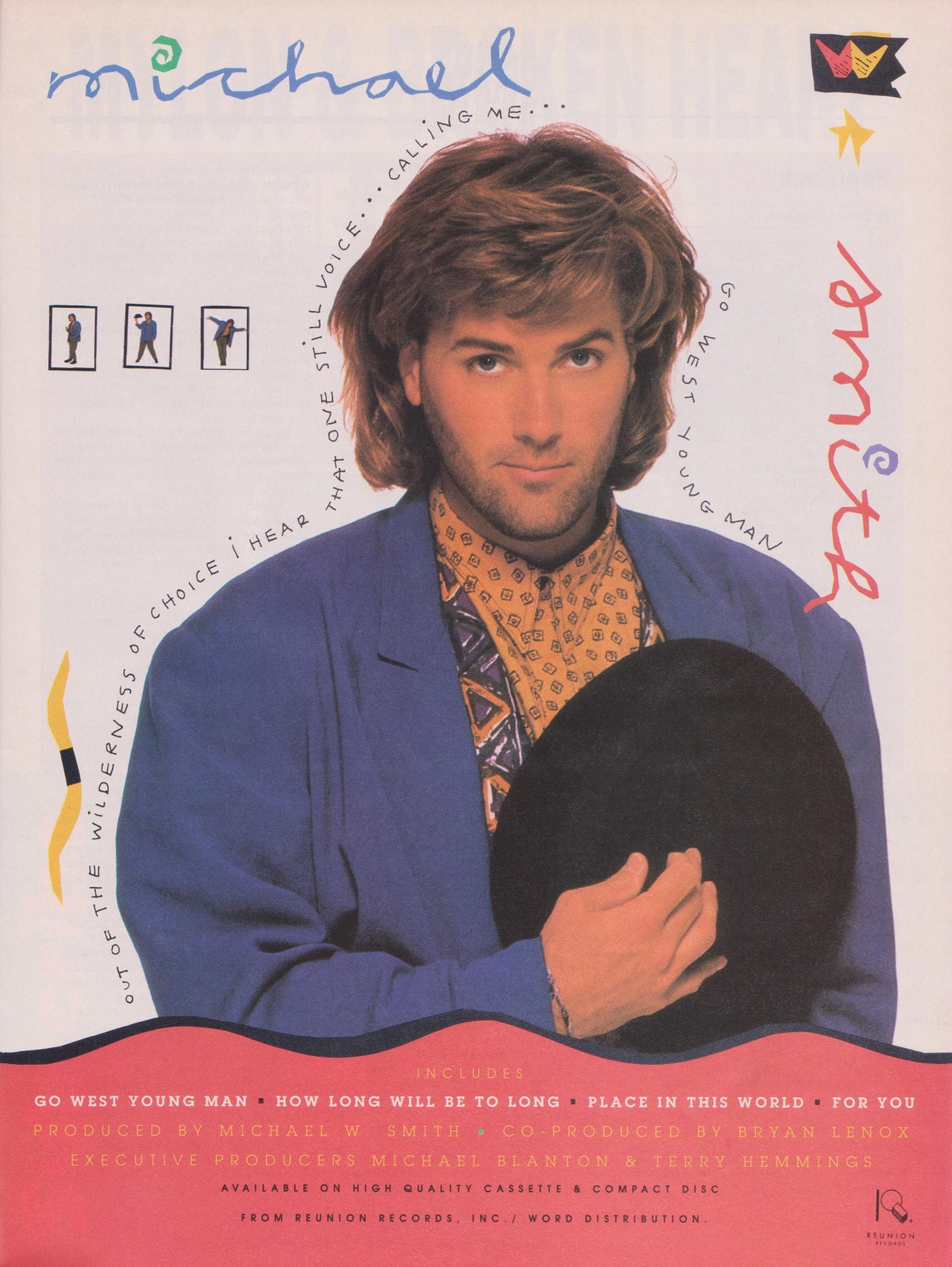 A full-page advertisement for Michael W. Smith’s Go West Young Man was featured in the October 1990 issue of CCM Magazine.