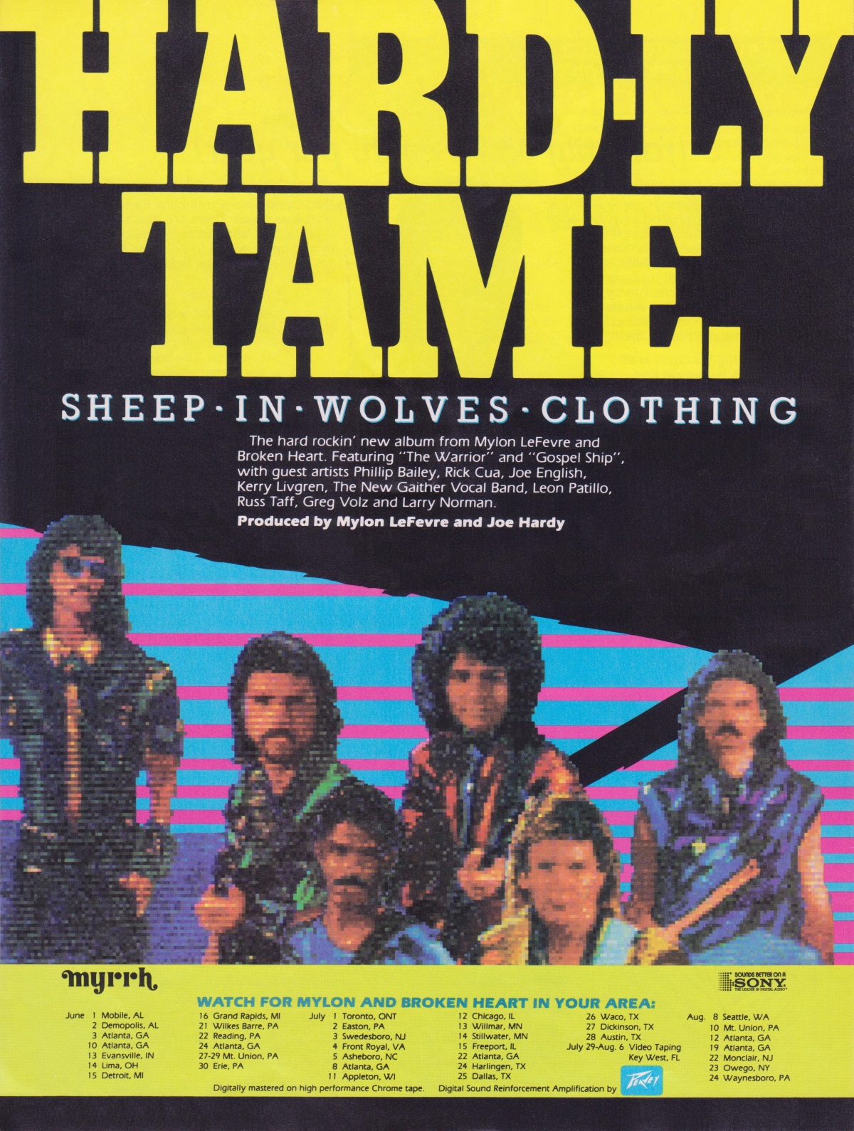 A full-page advertisement for Mylon LeFevre’s Sheep In Wolves Clothing was featured in the June and July 1985 issues of CCM Magazine.