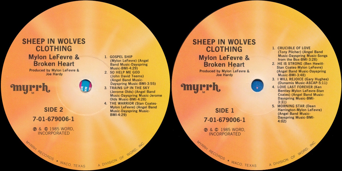 Sheep in Wolves Clothing is the third studio album by the American rock band Mylon LeFevre & Broken Heart, released on Myrrh Records in 1985, a division of Word. Also manufactured and distributed by A&M Records. The album was recorded by Joe Hardy at seven different studios (primarily at Ardent Studios in Memphis, Tennessee; and at Crescendo Recorders in Atlanta, Georgia), with Hardy and Mylon LeFevre producing. Mixed by Joe Hardy.