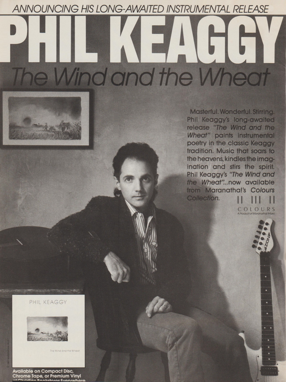 A full-page advertisement for Phil Keaggy’s instrumental album The Wind and The Wheat was featured in the February 1987 issue of CCM Magazine.