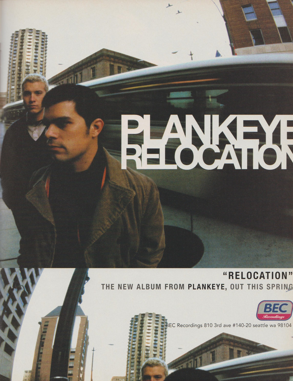 Having stripped down to a two piece, both Eric Balmer (vocals/guitar) and Luis Garcia (bass) return with the stunning ‘Relocation’, the bands first album since the departure of Scott Siletta (now of Fanmail). Produced by Gene Eugene, Plankeye have been encouraged once again to push back established boundaries of past projects and enter in to a whole new dimension; simultaneously retaining their already established musical identity. Erik Balmer and Luis Garcia are here joined by Frank Lenz (drums), Burleigh Drummond (percussion) and Gene Eugene (piano and keys), to produce a fine set of rock compositions, complete with lyrics that contemplate life and the answer to our own futile attempts at living without a personal relationship with God through faith in Jesus Christ. ‘Relocation’s’ mood and tone seamlessly meander between high energy out and out rock numbers («Say Now That You’re Sorry», «When It Comes» and «Break Of Dawn»), and the more vulnerable songs of lament and struggle («Goodbye», «Call Me A Liar» and «Invisible»). Wonderful imagery is seed herein that actually captures everyday life and our own deep seated need, even as believers, to realise just how vulnerable we are without God’s grace; resulting in a project that actually manages to relate to the listener on a much deeper level. With ‘Relocation’, Plankeye not only manage to mark the beginning of a new musical era for themselefs, but also demonstrate that they have never ceased to progress in both musical and lyrical maturity. [Alex Figgis, Cross Rhythms, October 1999]