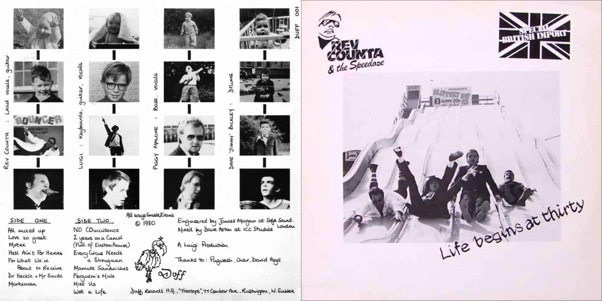Life Begins at Thirty is the sole album by the British new wave combo Rev Counta & the Speedoze, released on Duff Records in 1980. Also released in the US by StarSong Records. (According to a note featured in the Gospel section of the April 25, 1981 issue of Record World magazine, “In May, Star Song Records will release four albums featuring Christian “new wave” and British rock sounds. Selling under the name Star Song Special Products, the titles are No Sham, the Bill Mason Band; Charge of the Light Brigade, Ishmael; Life Begins at Thirty, Rev. Counta & the Speedoze; and The Alternative, Giant – killer.“) The band features Rev. Counta on lead vocals and guitar (a.k.a. Ian “Ishamel” Smale, formerly of Ishmael United), Luigi on keyboards, guitar, and vocals, Piggy Malone on bass and vocals (a.k.a. Laurie Mellor, the mastermind behind the multi-artist compilation Shots in the Dark ), and Dave “Jimmy” Bickley on drums.
