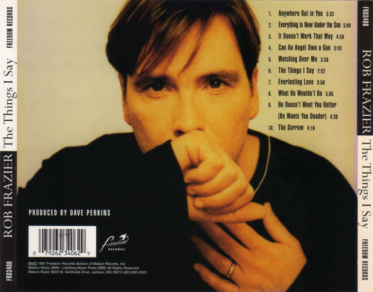 The Things I Say is the fifth studio album by the American singer and songwriter Rob Frazier, released on Freedom Records in 1997, a division of Malaco Records. The album was produced, recorded, and mixed by Dave Perkins at Dave’s Garden Of Eden in Nashville, Tennessee. All songs written or co-written by Rob Frazier.