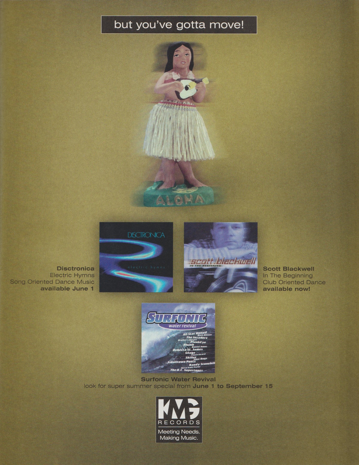 A full-page advertisement for various new releases on KMG Records, including Scott Blackwell’s In the Beginning, was featured in the May 1999 issue of CCM Magazine.