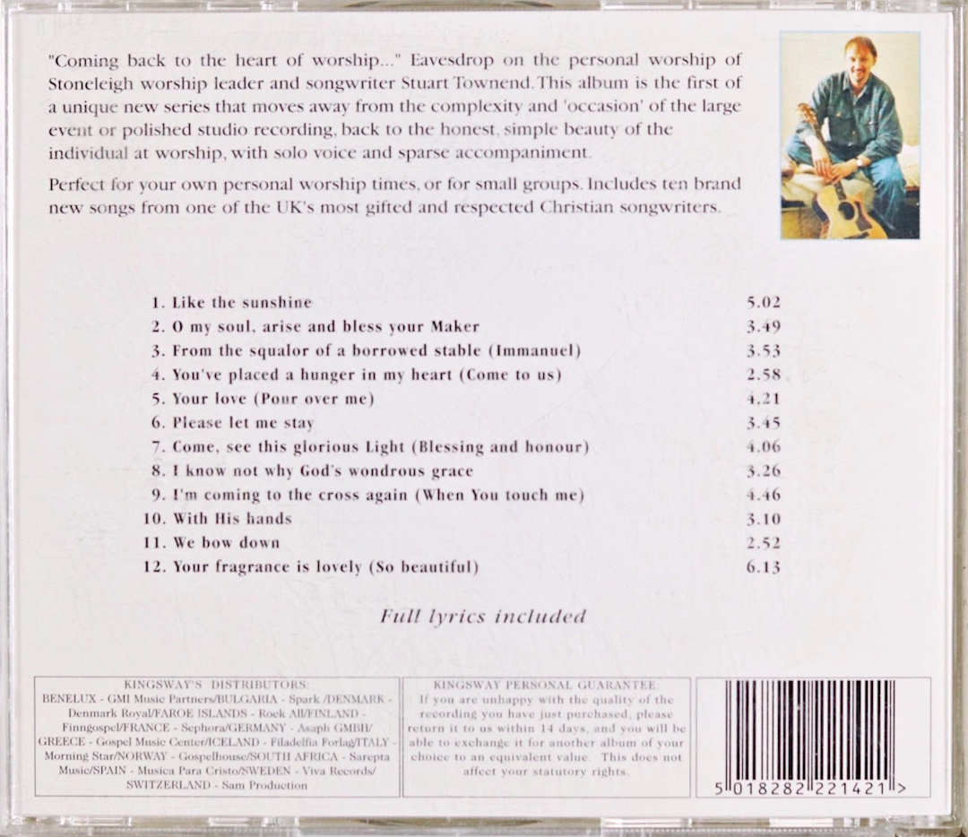 Perfect for your own personal worship time, or for small groups. Includes ten brand new songs from one of the UK’s most gifted and respected Christian songwriters. [A note printed on the back of the CD]
