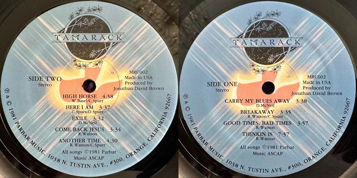 The self-titled, sole full-length album by the American pop/rock group Tamarack was independently released on Parbar Music in 1981 in co-operation with MRC Records, a sub-label of Maranatha! Music. The album was recorded at Poiema Studios in Camarillo, California; with Jonathan David Brown producing. (Tracks B1 and B2 recorded by Thom Roy at Whitefield Studios in Santa Ana, California.)
