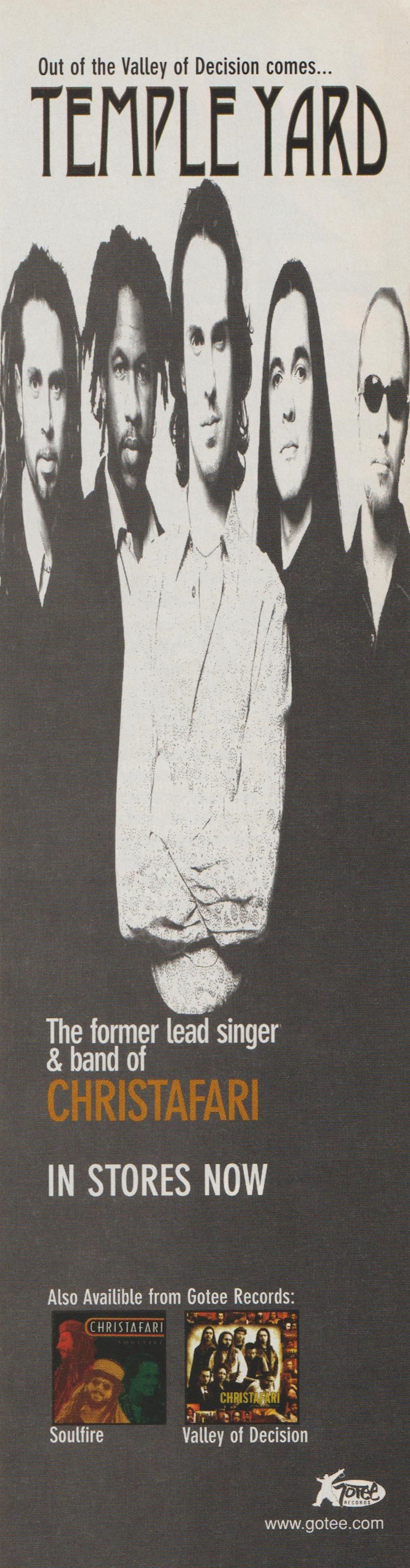 An advertisement for Temple Yard’s self-titled album was featured in the March 1999 issue of CCM Magazine.