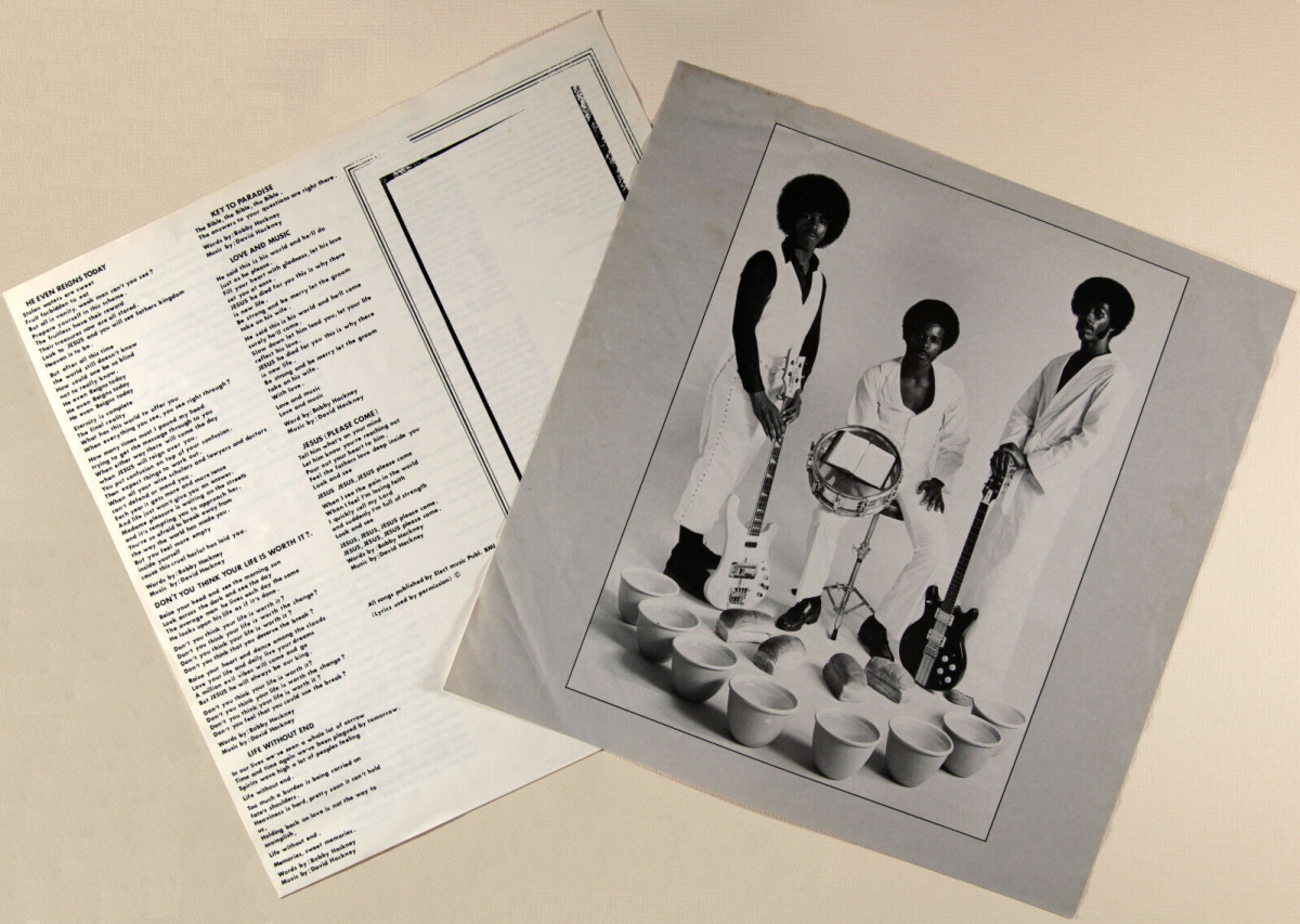 As Darth Vader might say: “The fuzz is strong on this one”. Monster home-made LP from three black brothers with eyes set back ten years toward heavy bluesy fuzzed-out Hendrix sounds. With Bobby Hackney on bass and lead vocals, Dennis Hackney on drums, and David Hackney tearin’ away on lead guitar, this is heavy classic rock that kicks big time, but not at the expense of melody and texture as the soulful tracks that fill out side two attest. Lots of distortion and whammy bar on the leads and frequently layered with a hazy rhythm guitar wall of sound. «Revelation’s Eve», «Always At Your Door», «He Even Reigns Today», «The Christ In You», «Key To Paradise» and «Jesus (Please Come)» are some of the titles. Phasing is used on «Life Without End» – a hushed dreamy psych gem that effortlessly carries you into the ethereals. Play at maximum volume. [Ken Scott, The Archivist, 4th edition]