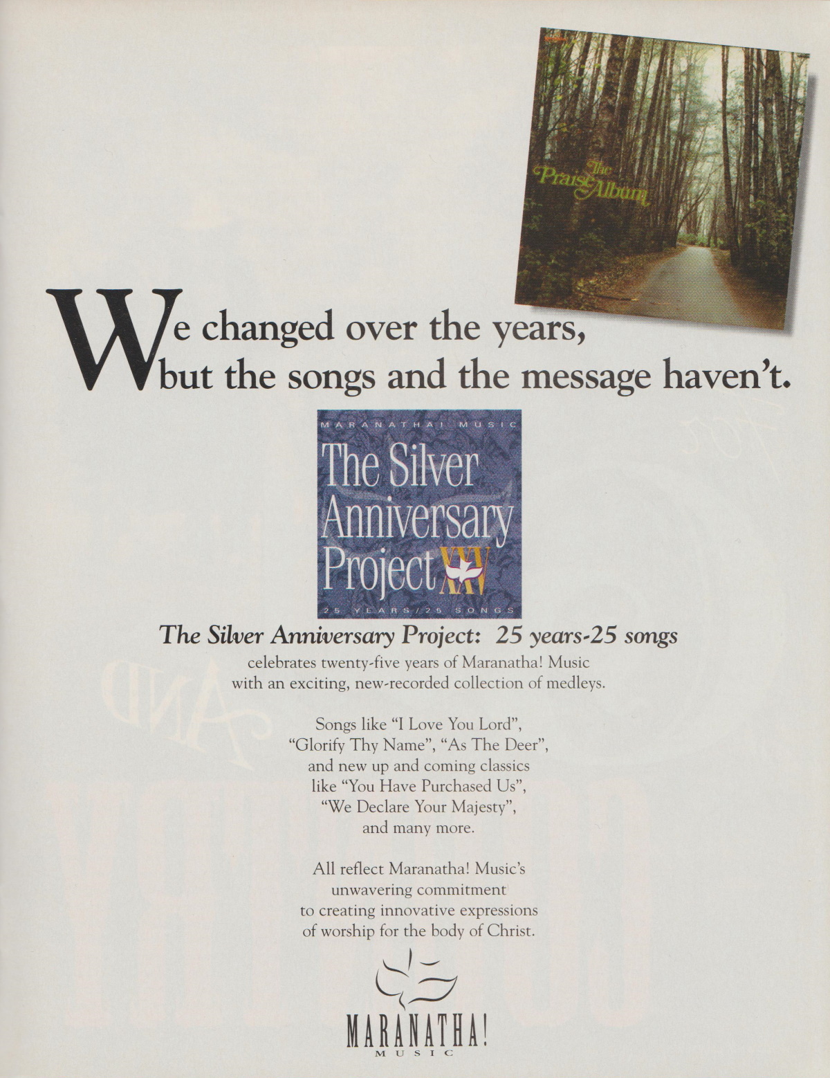 A full-page advertisement for Maranatha! Music’s The Silver Anniversary Project XXV was featured in the November 1996 issue of CCM Magazine.
