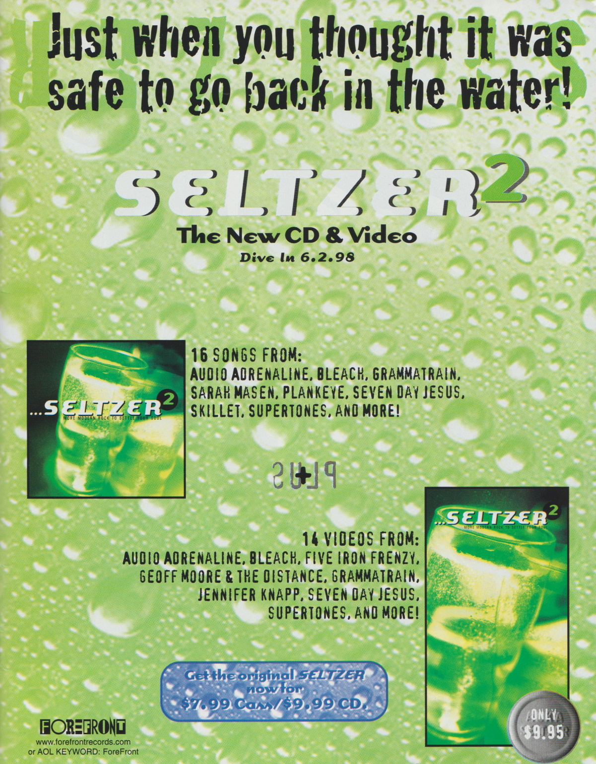 A full-page advertisement for the multi-artist sampler album 'Seltzer 2: More Modern Rock to Settle Your Soul' was featured in the May 1998 issue of CCM Magazine.A full-page advertisement for the multi-artist sampler album Seltzer 2: More Modern Rock to Settle Your Soul was featured in the May 1998 issue of CCM Magazine.