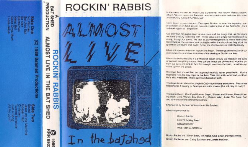 So one year after releasing Noisy Little Sunbeams, the Rockin’s Rabbis are back with this non-live album. After starting off with a… country song?… the band jumps back into their off-kilter brand of Aussie Alt Rock. Lots of humor, cheese, and experimentation. Some songs like «Be Alert» flirt with metal and punk. They experiment with many sounds, but always come back to some kind of cowpunk metal sound. This tape used to be on Google Play, but it seems that it sadly has been removed. [Christian Tape Underground, January 5, 2020]