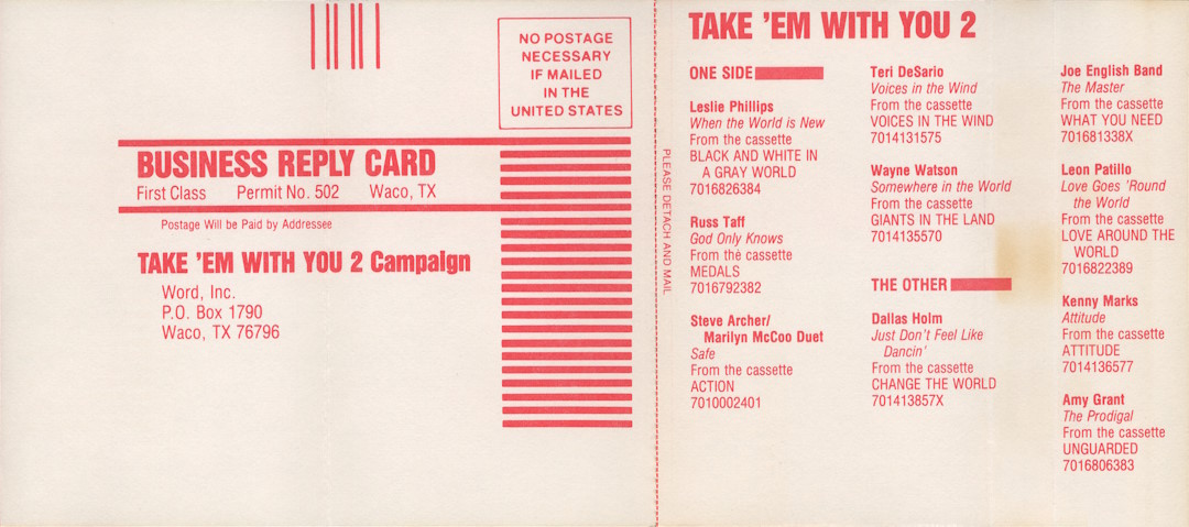Various Artists - Take 'em With You 2 (Word 1985) cassette cover, inlay