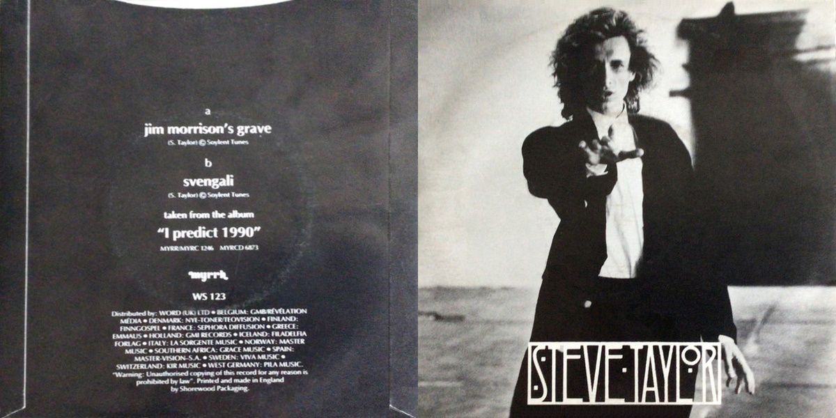 “Jim Morrison’s Grave” – b/w “Svengali” – is a two-sided 7-inch vinyl single by the American singer, songwriter, and producer Steve Taylor, released in the UK on Word Records in 1988 (catalogue number WS 123). Both tracks were taken from his full-length album I Predict 1990 released on Myrrh Records in 1987, a division of Word. (Also manufactured and distributed by A&M Records.) The album was recorded by David Schober and Dave Perkins at Music Grinder Studios in Hollywood and at Wayne Cook Studios in Glendale, California; and as well at Reelsound Bus in Nashville, Tennessee; and at CBS Studios in London, England; with The Beaufort Twins producing (a.k.a. Dave Perkins and Steve Taylor). Mixed by Schober, Perkins, Malcolm Harper and Steve Taylor in the 48 Track Reelsound Truck in Austin, Texas. Both tracks written by Steve Taylor.