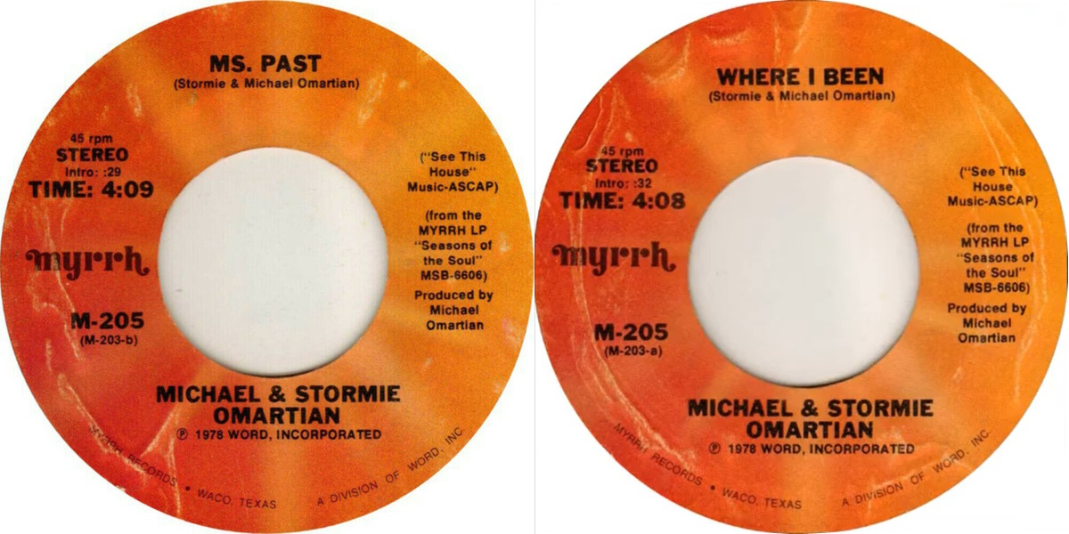“Where I Been” – b/w “Ms. Past” – is a two-sided 7-inch vinyl single by the American singer, songwriter, keyboardist, and producer Michael Omartian and his wife, lyricist Stormie Omartian, released on Myrrh Records in 1978 (catalogue number M-205). Both tracks taken from their full-length album Seasons of the Soul released the same year on Myrrh Records, a division of Word, recorded by Buck Herring and Wally Duguid at Buckskin Studios in Northridge, California; with Michael Omartian producing. Mixed by Jay Graydon at Garden Rake Studio in Sherman Oaks, California. Music by Michael Omartian with lyrics written by Stormie.
