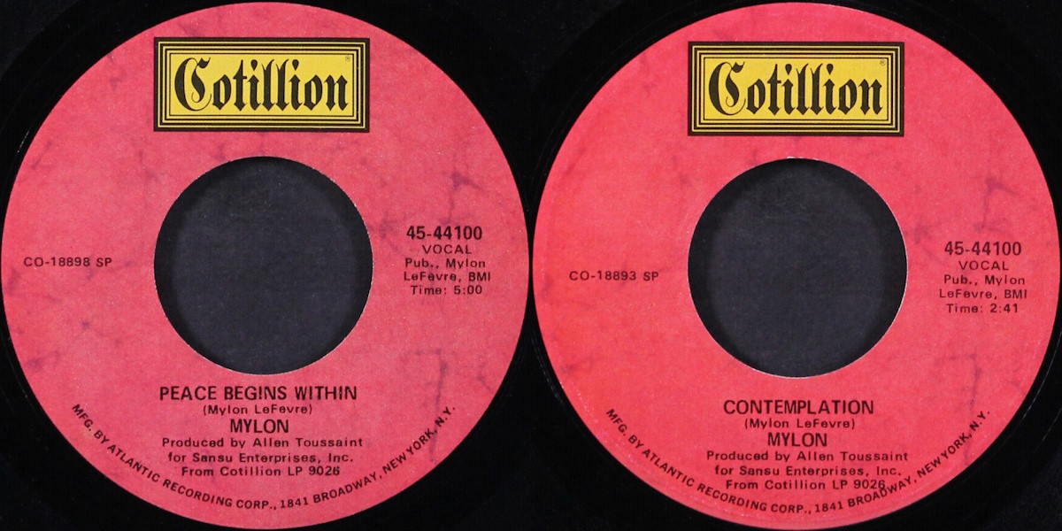 Mylon – Cotillion 44100. Contemplation (Mylon LeFevre, BMI) / Peace Begins Within (Mylon LeFevre, BMI).