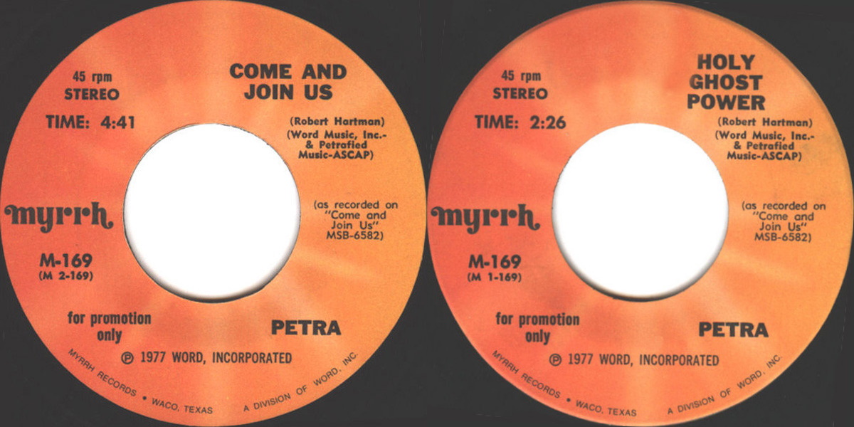 Holy Ghost Power, b/w “Come and Join Us”, is a two-sided 7-inch vinyl single by the American rock band Petra, released on Myrrh Records in 1977, a division of Word (catalogue number M-169). The track was lifted from the band’s full-length album Come and Join Us released on Myrrh Records the same year, recorded by Terry Jamison at Golden Voice Studios in South Pekin, Illinois; with Austin Roberts producing. Both track written by Petra guitarist Bob Hartman.