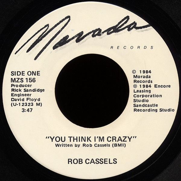 You Think I’m Crazy is a 7-inch vinyl single by the American singer and songwriter Rob Cassels, released on Morada Records in 1984 (catalogue number MZS 156). The track was taken from The Rob Cassels Band’s full-length album Kamikaze Christian, released on Morada Records the previous year, recorded and mixed by David Floyd at Sandcastle Recording Studios in Greenville, South Carolina; with Rick Sandidge producing. The track was written by Rob Cassels.