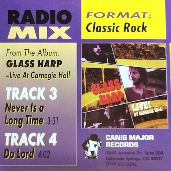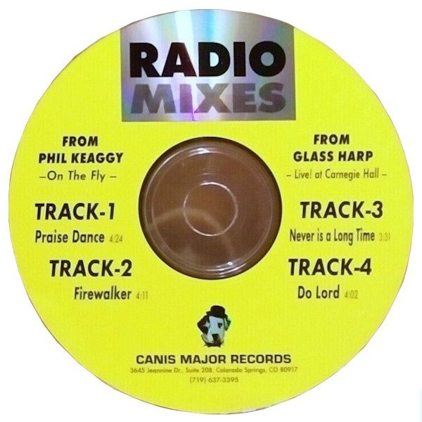 Radio Mixes: On the Fly / Live! at Carnegie Hall is a four-track CD Maxi-Single by the American singer, songwriter, and guitarist Phil Keaggy, released on Canis Major in 1997, a division of John August Music. The first two tracks were taken from Keaggy’s full-length instrumental album On the Fly released on Canis Major Records the same year. The album was recorded and mixed at Phil Keaggy’s own Kegworth Studio in Nashville, Tennessee; with Keaggy producing. The final two tracks were taken from Glass Harp’s (a power rock trio fronted by Keaggy) CD disc Live! at Carnegie Hall released on Canis Major Records the same year. The live album was recorded at Carnegie Hall on November 21, 1971, with Lewis Merenstein producing (though not released before 1997).