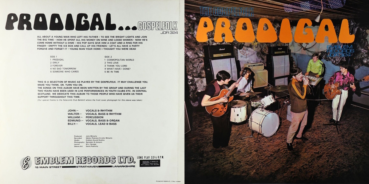 Prodigal is an album by the British garage rock band The Gospelfolk, released on Emblem Records in 1969. The album was recorded by band members Walter Paterson and John McLarty at Emblem Sound Studios with McLarty producing.