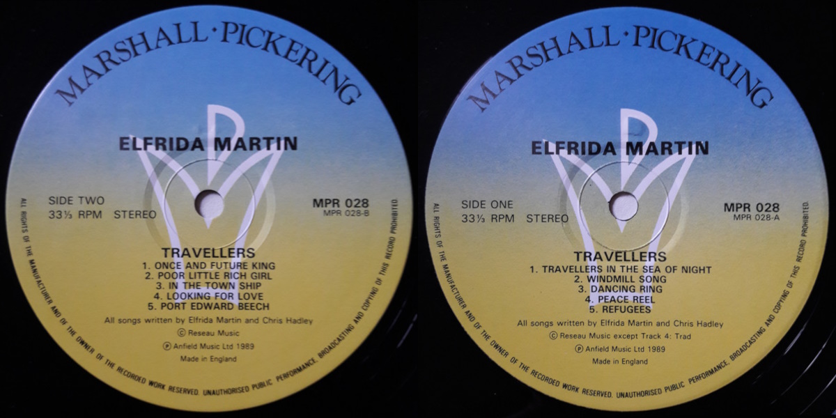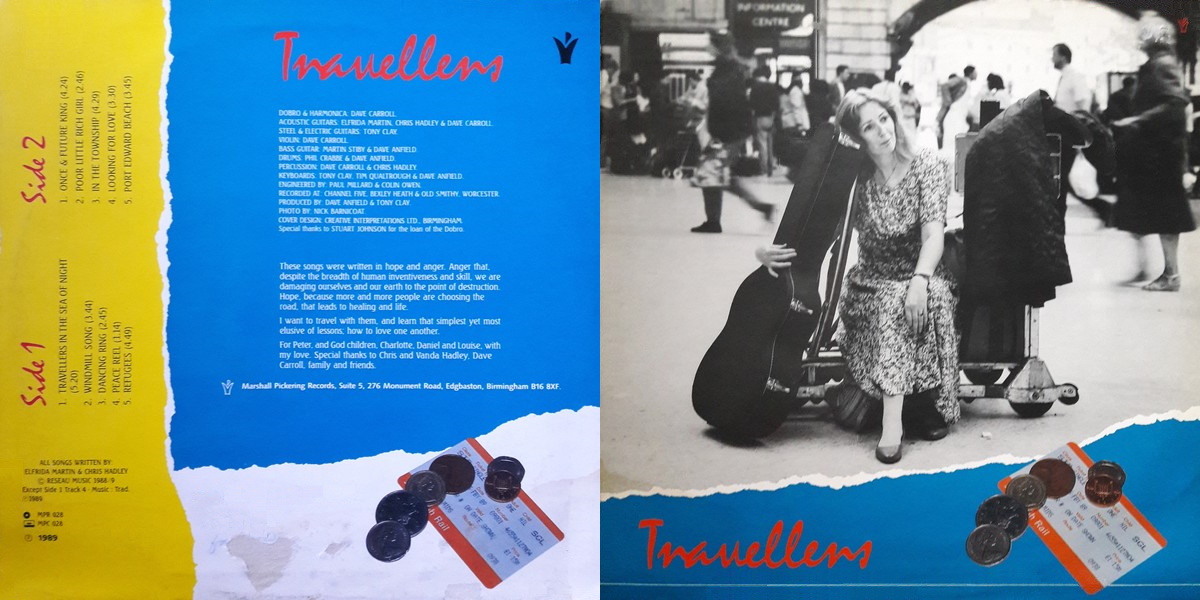 Travellers is an album by the British folk singer and songwriter Elfrida Martin, released on Marshall Pickering Records in 1989. The album was engineered by Colin Owen and Paul Millard at The Old Smithy Recording Studio in Worcestershire, England; with David Anfield and Tony Clay producing. All songs written by Elfrida Martin and Chris Hadley except the trad. tune “Peace Reel”.