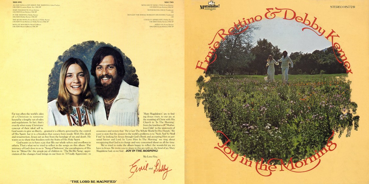 Joy in the Morning is the sophomore album by the American inspirational pop duo Ernie Rettino & Debby Kerner, released on Maranatha! Music in 1975. Featuring a cover of the popular song “All Day Song (Love Him In The Morning)”, a song written by John Fischer and released on his album Still Life the previous year.