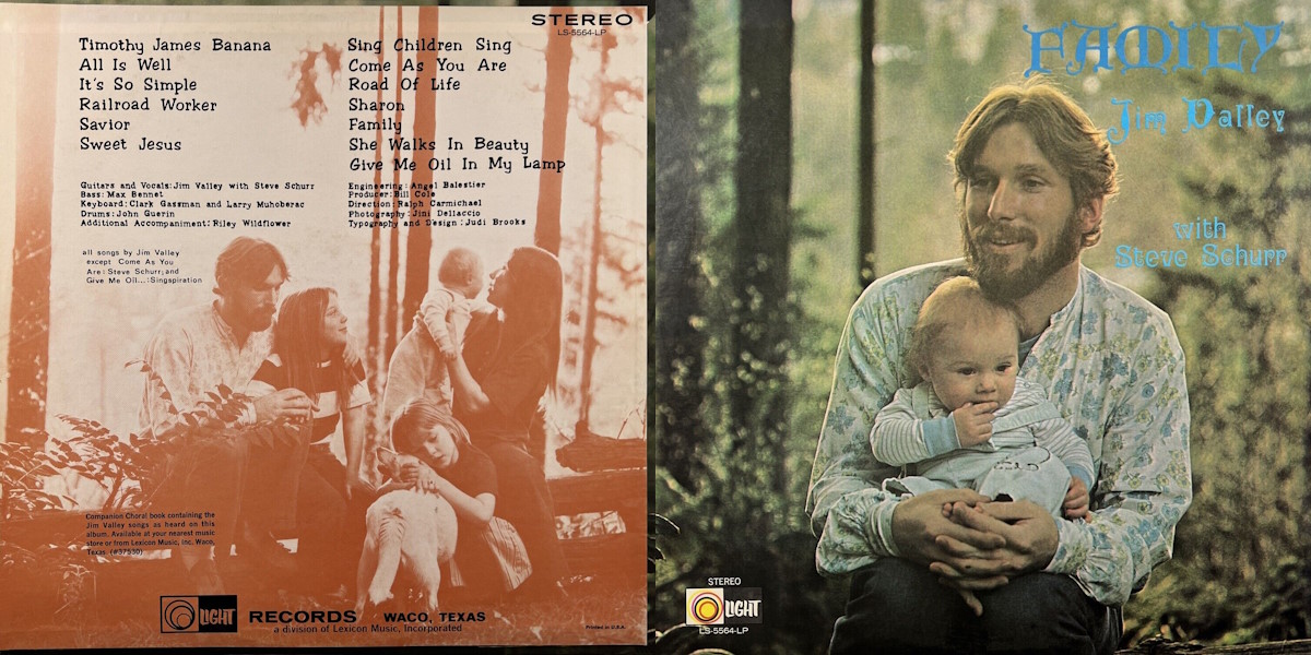 Family is an album by the American singer and songwriter Jim Valley with Steve Schurr, released on Light Records in 1971. The album was recorded by Angel Balestier with Bill Cole producing. All songs written by Jim Valley except track B2 written by Steve Schurr as well as “Oil in My Lamp”, a traditional hymn.