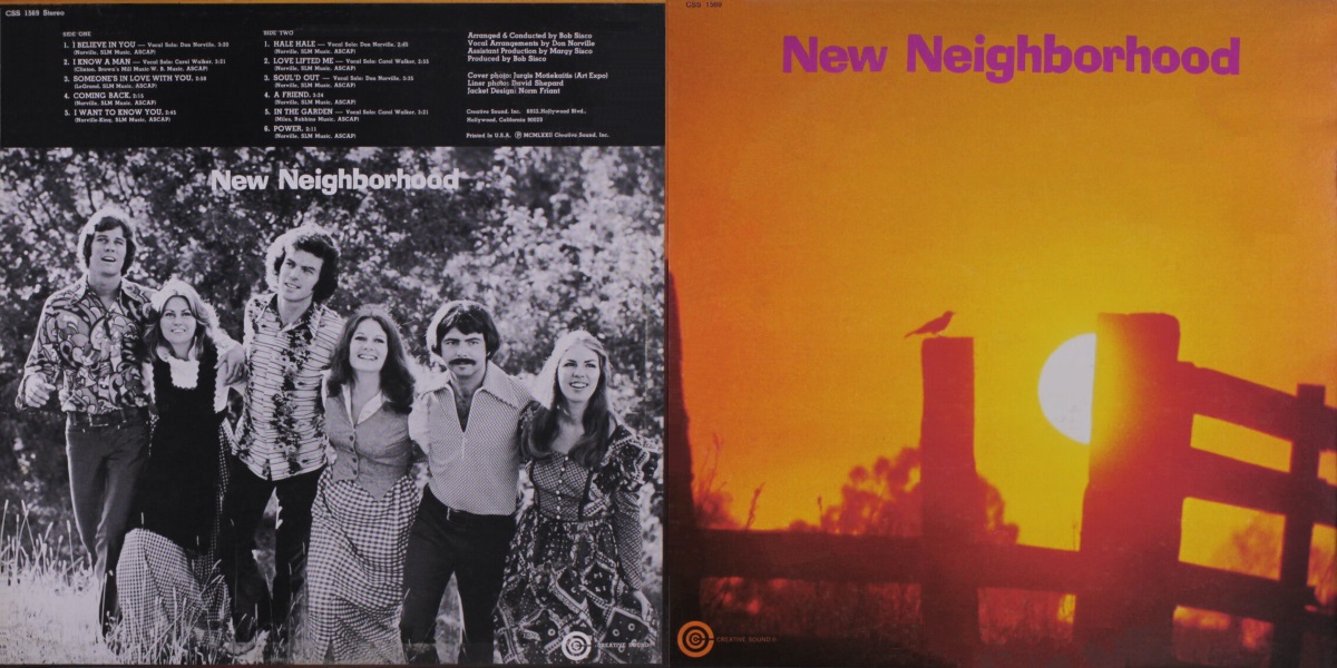 The self-titled debut album by the American pop combo New Neighborhood was released on Creative Sound in 1972. The album was produced, arranged, and conducted by Bob Sisco, assisted by Margy Sisco. Vocal arrangements by Don Norville.