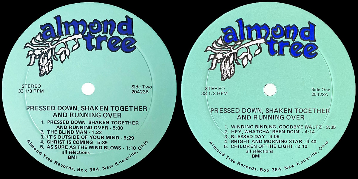 Pressed Down, Shaken Together and Running Over - Pressed Down, Shaken Together and Running Over (Almond Tree Records 1972) LP labels, Side2 and Side1