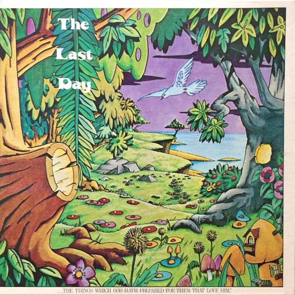 Most Christian groups that utilize saxophone seem to end up in either the jazz/pop or jazz/MOR camp. The Last Day, on the other hand, has created a masterpiece that while undeniably influenced by jazz, solidly retains a classic rock/folk-rock context – similar to Traffic’s John Barleycorn Must Die in that respect. Don Lanphere’s alto and soprano saxophones are an integral part of the group’s sound, the skillful licks effortlessly washing over the music as intricate jazz solos or moody intoxicating ripples. Also some good underground electric rhythm and lead guitar work that places the group in that whole west-coast guitar-based “psych” scene alongside Wilson McKinley, Last Call Of Shiloh, etc. The mesmerizing male/female harmonies are equally cutting edge. Sturdy progressive folk-rock vibes can be found within such selections as «God’s Nature», «Cloud Of Glory» and «Joyful Noise». Other songs like «I Hear The Lord», «Come On Home» and «Heaven In Your Heart» fashion a dreamy mysterious folk/psych presence. All original songs, save for a creative interpretation of «One In The Spirit». In fact the whole LP is one of the most unique and creative Jesus music albums I’ve heard. Magnificent color fantasy art spanning both the front and back of the gate-fold cover. Spokane, Washington custom label. [Ken Scott, The Archivist, 4th edition]