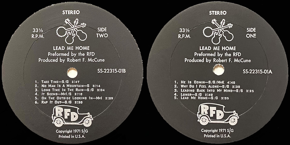 Lead Me Home is an album by the American folk-rock combo The RFD, self-released in 1971. The album was produced and recorded by Robert F. McCune. (RFD used to stand for Rural Free Delivery, the early US postal system that got mail to previously unserved rural residents. Here it stands for Russ, Fred, and Dan.)