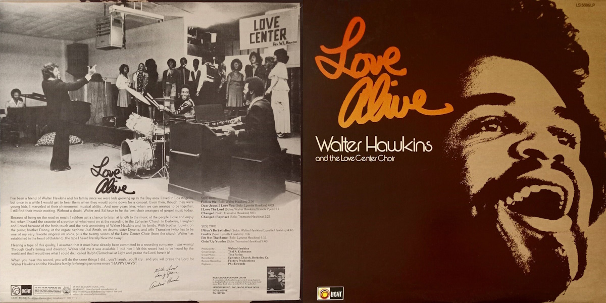 Love Alive is an album by the American gospel singer and songwriter Walter Hawkins and The Love Center Choir, released on Light Records in 1975. The album was recorded by Phil Edwards at Ephesian Church in Berkeley, California; with Walter Hawkins producing. Remote recording by Wally Heider Recorders.