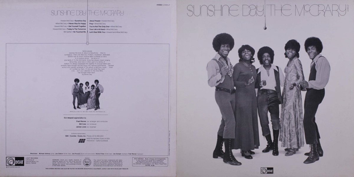 The McCrary - Sunshine Day (Light Records 1972) LP Back and Front Cover Art