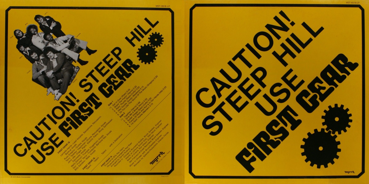 First Gear - Caution! Steep Hill Use... (Myrrh Records 1974) LP Back and Front Cover Art