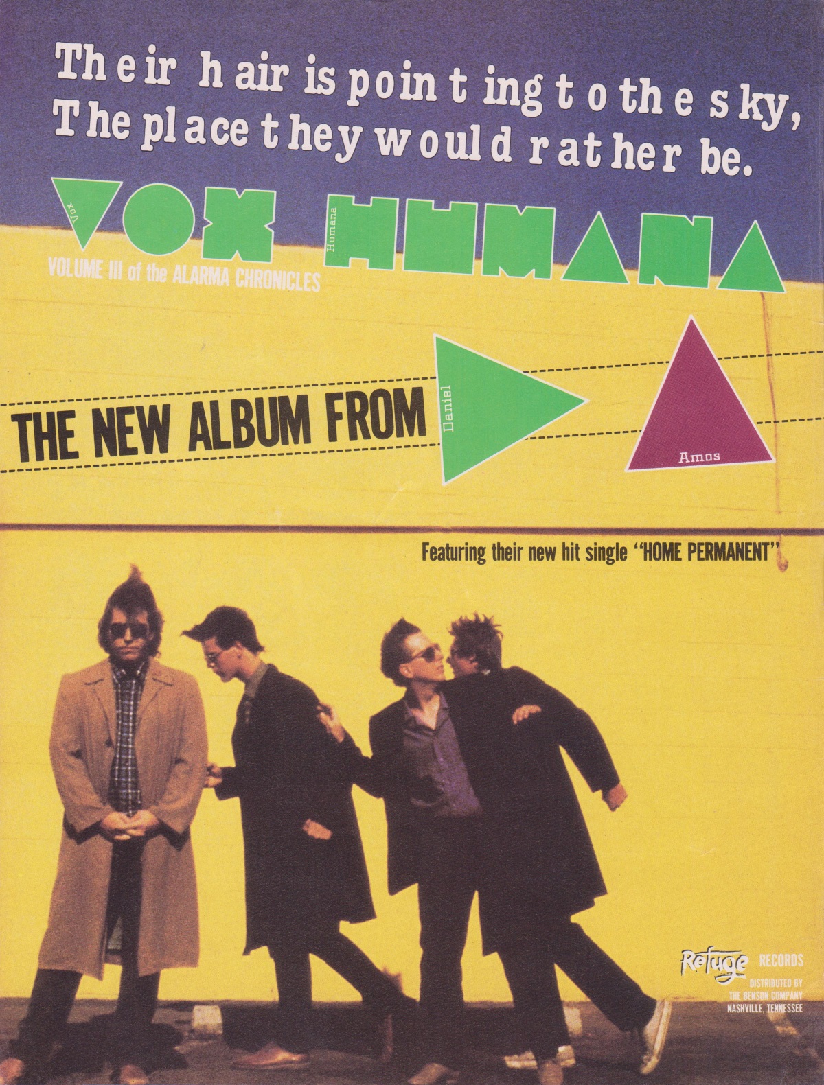 A full-page advertisement for Daniel Amos’ Vox Humana was featured in the October 1984 issue of CCM Magazine.