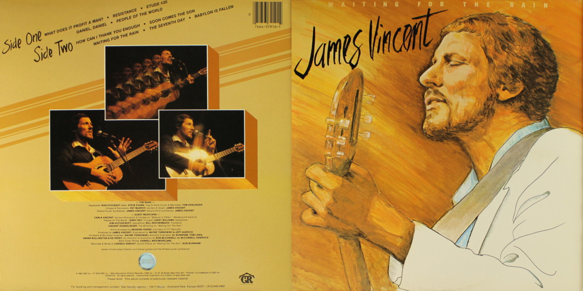 Waiting for the Rain was included among CCM Magazine‘s Top 10 Albums of the Year. – Another entry into the jazz-rock field (once a rare quantity in Christian music), James Vincent quietly arrived on the scene with this beautiful and powerful album. His fine guitar playing and strong sense of melody, combined with his unique voice, brought one of 1978’s most satisfying records. (These ten albums released during 1978, were chosen for excellence in production, arrangements, composition and performance, as well as their overall contribution to contemporary Christian music.)