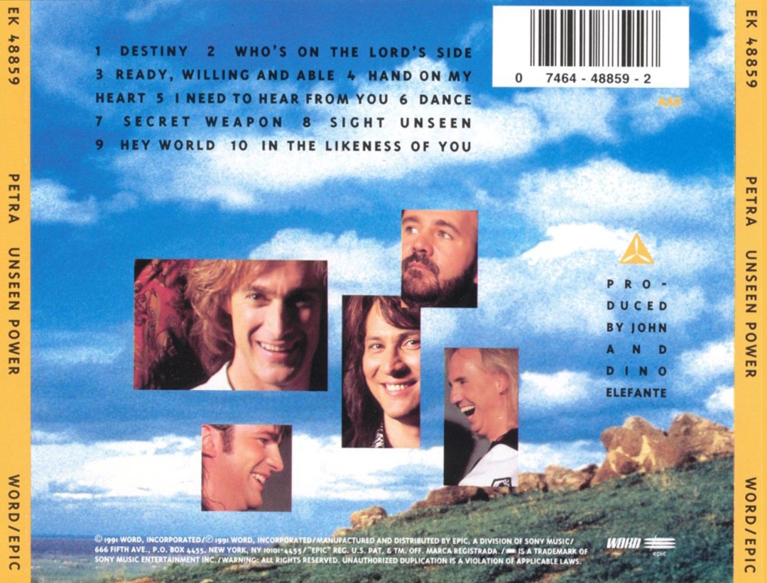 Released in 1991 on Dayspring Records, Unseen Power was the thirteenth studio album by Petra. It won a Grammy Award for Best Rock Gospel Album in 1992, and a Dove Award for Rock Recording Song for «Destiny». It features a cover of Rev. Timothy Wright’s Gospel song «Who’s on the Lord’s Side», with a rock flavor. Other popular songs are the rhythmic «Dance», with music composed by John Elefante, and the rocking «Ready, Willing, and Able».