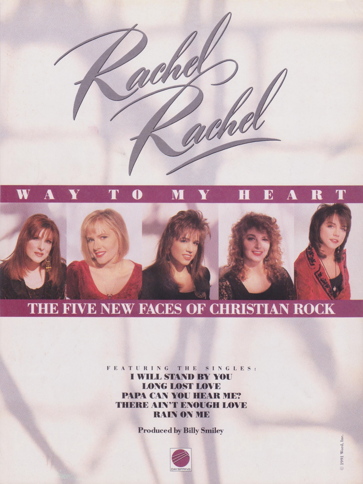 A full-page advertisement for Rachel Rachel’s debut album Way to My Heart was featured on the back cover of the April 1991 issue of CCM Magazine.