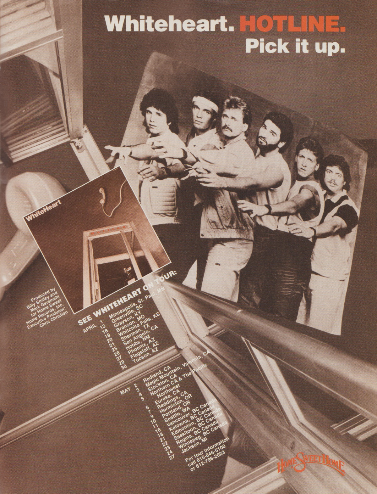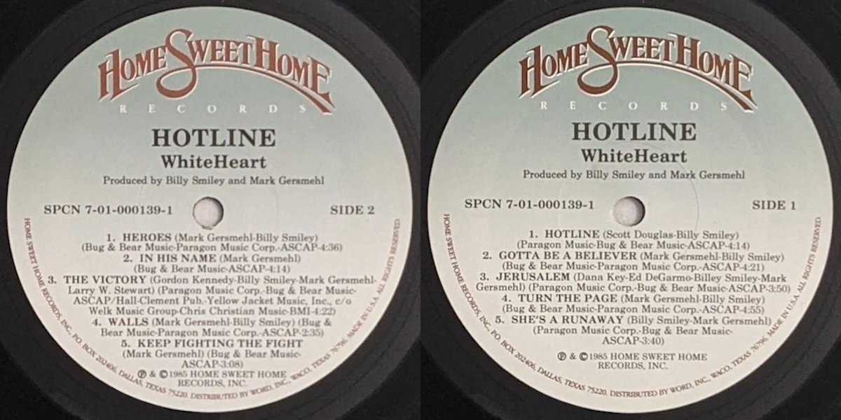 A full-page advertisement for White Heart’s Hotline was featured in the May 1985 issue of CCM Magazine.
