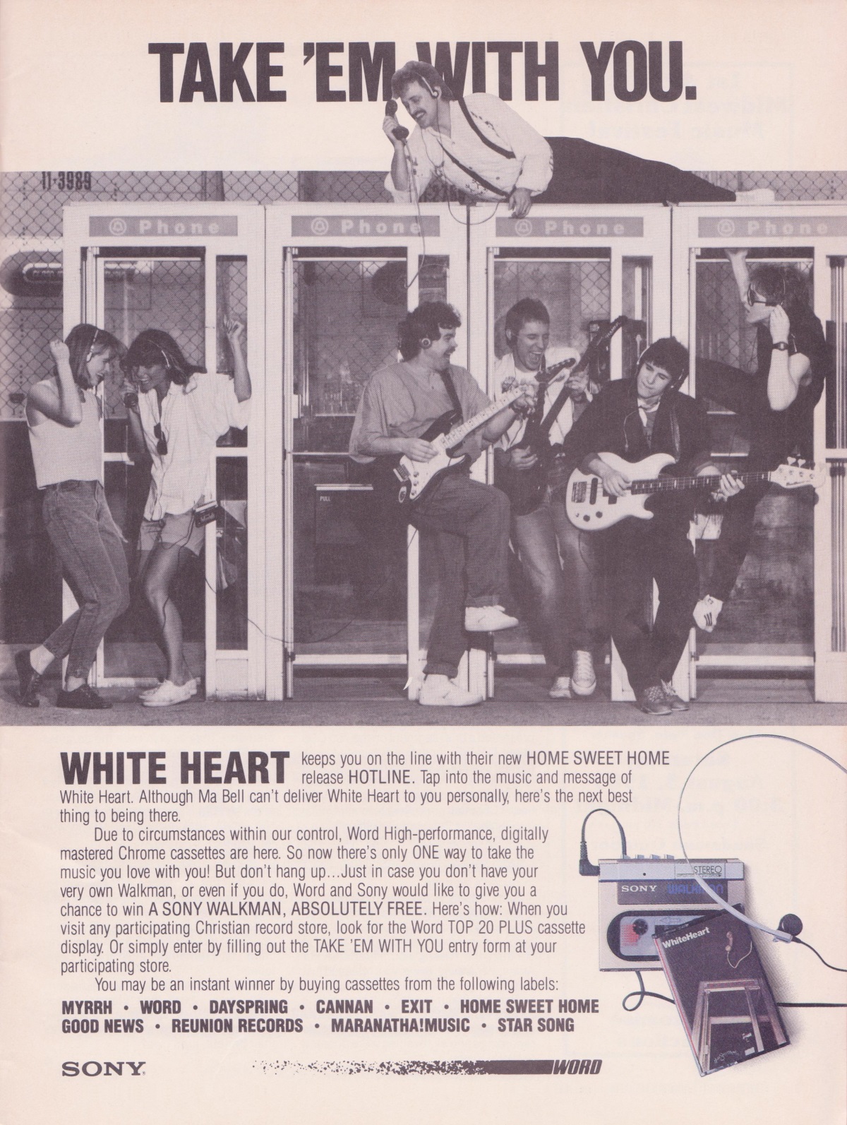 A full-page advertisement for Sony Walkman – featuring Word signed artist White Heart’s Hotline – was featured in the June 1985 issue of CCM Magazine.