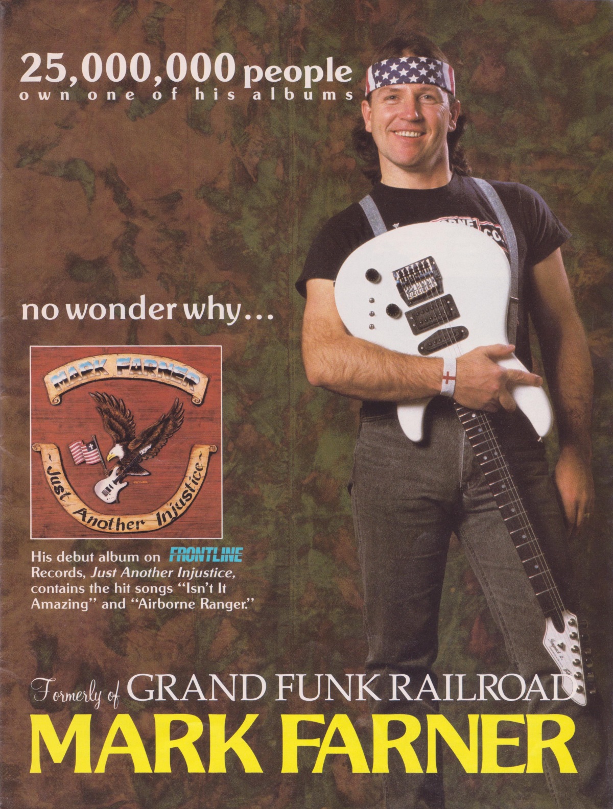 A full-page advertisement for Mark Farner’s Just Another Injustice was featured in the July 1988 issue of CCM Magazine.